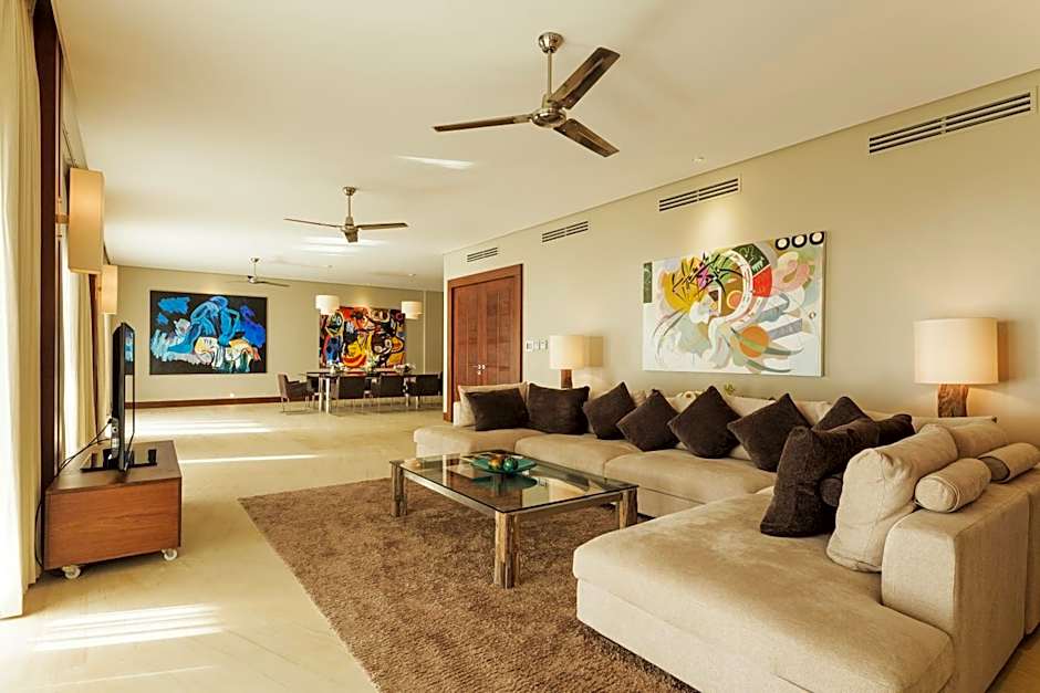 Choice of stay spaces includes the Apartment, 3 Bedroom, Sea View — a 5382 sqft abode designed for comfort, with 2 adults and 1 child in mind, featuring 1 King bed, 2 Queen beds, a private entrance, balcony or terrace, a kitchen with kitchenware, a garden view, and a bathtub with free toiletries. Larger options include the Penthouse Apartment (10764 sqft) with a Sofa Bed, a King bed, and 3 Queen beds, plus a Presidential Apartment and other suites to fit gatherings. Additional options such as the Penthouse, Suite Penthouse, and Quadruple Room, Pool View contribute to the variety.